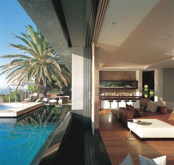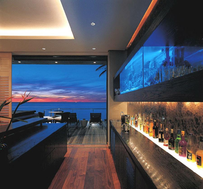 超級(jí)別墅根據(jù)地形特點(diǎn)設(shè)計(jì)成一個(gè)斜坡,其背面低于水平面約50%。合理地利用了環(huán)境進(jìn)行獨(dú)特的設(shè)計(jì),使建筑與環(huán)境完美地融合在一起。大量使用當(dāng)?shù)亟ㄖb飾材料,巧妙地結(jié)合現(xiàn)代設(shè)計(jì)的特點(diǎn),創(chuàng)造了一個(gè)極其奢華的現(xiàn)代海景別墅。