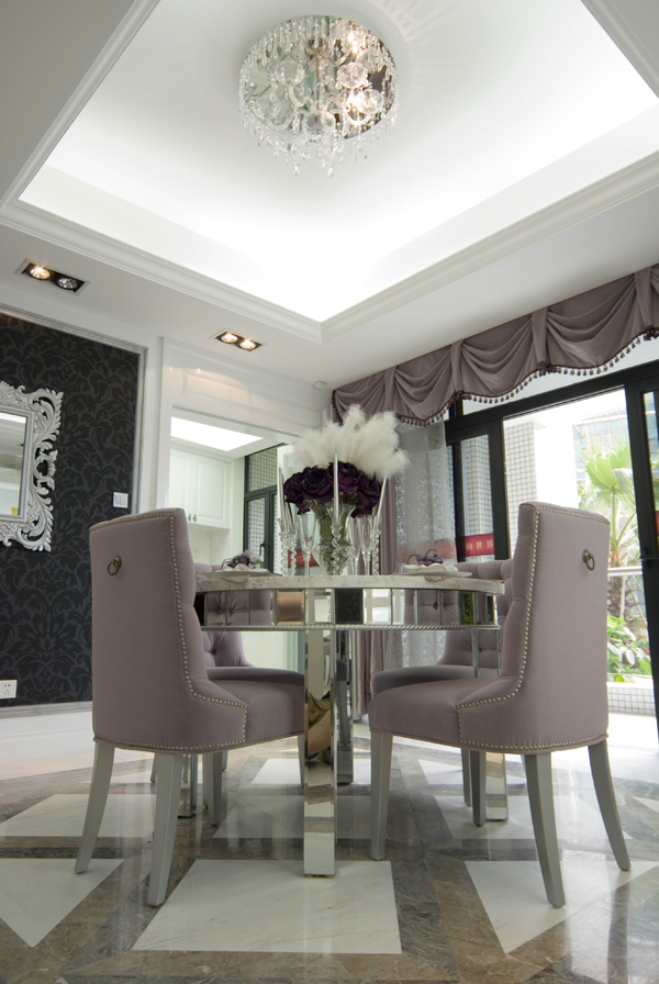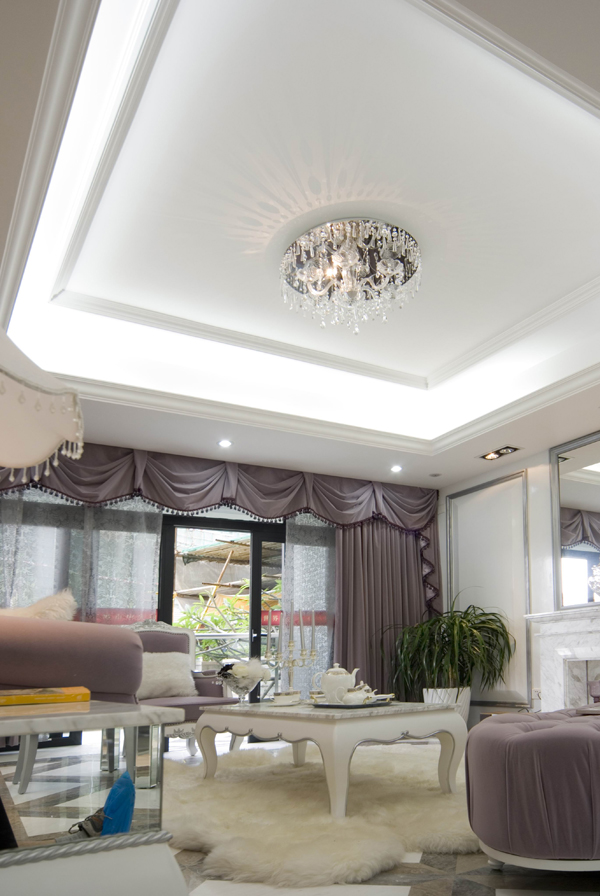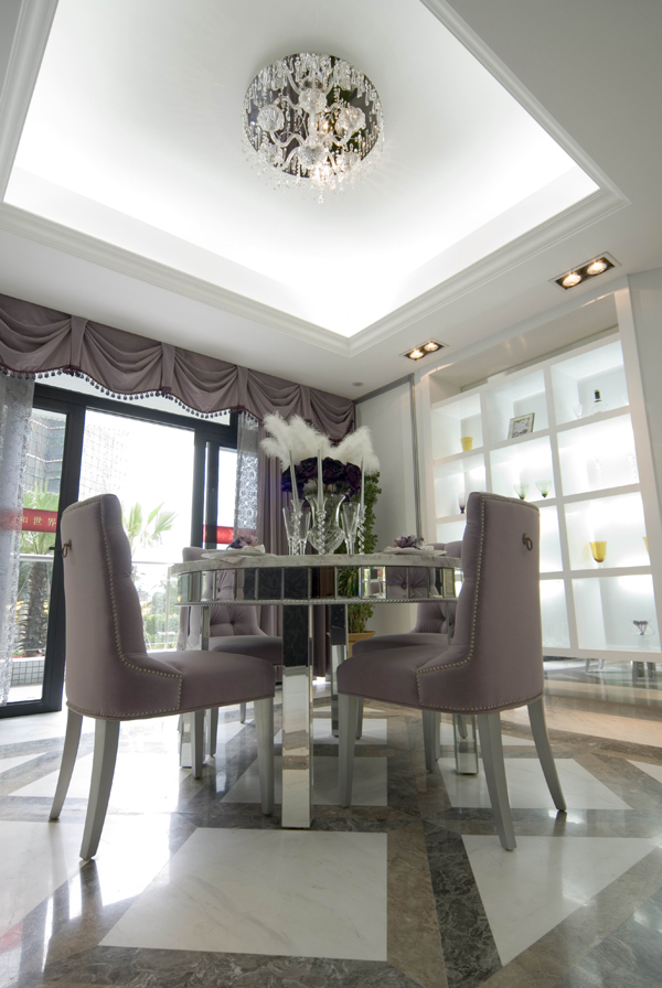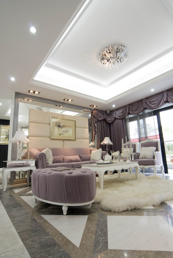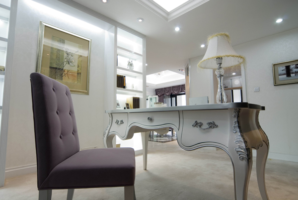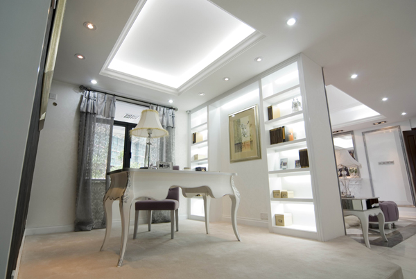 再結合華麗 古典的歐式家具.高貴的水晶吊燈,更顯出本示范位單的國際品位。希望使你置身于一個白色的王國里 ,成為童話里的主角。