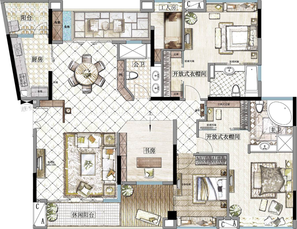 本設計理念來自于白色的王國。歐洲一個令人向往的國家,無論建筑到室內裝飾元素都充滿著古典.高雅.的貴族氣派。本示范單位裝飾元素就是來源于這里的。從空間來說,以開放,明亮為主。當你步進室內,你就會感受到客廳 餐廳 書房的空間即獨立又共享。房間里的衣帽間開放處理,使空間便加實用 靈活。