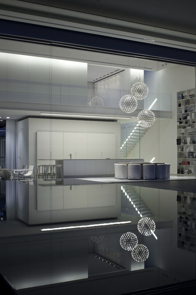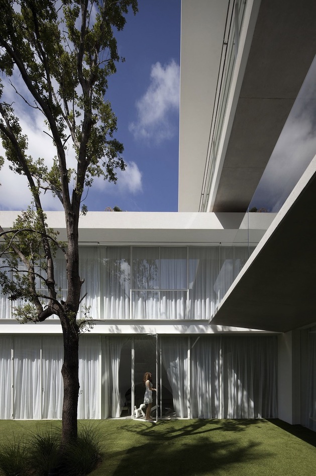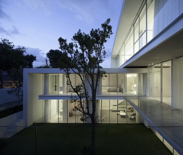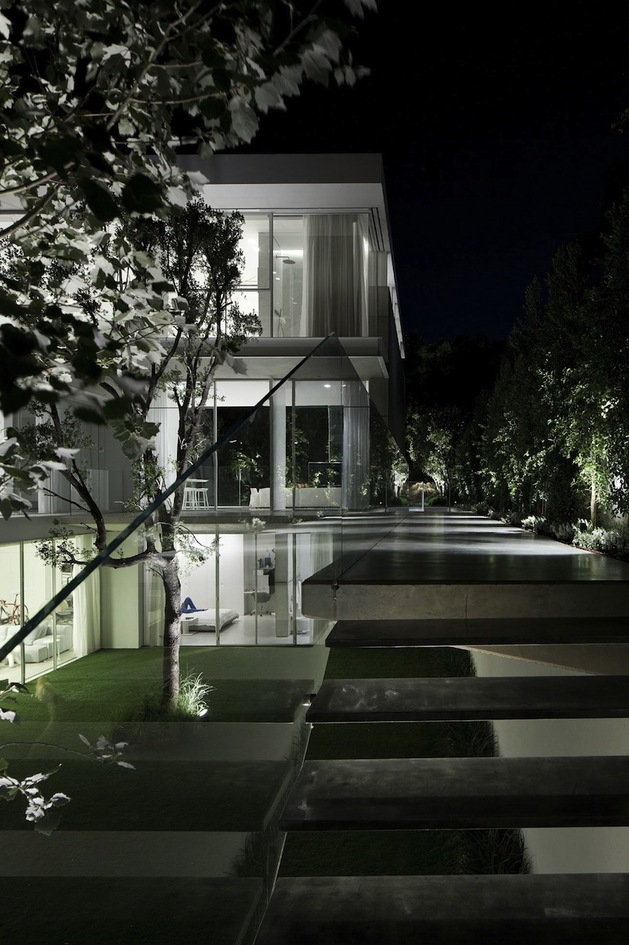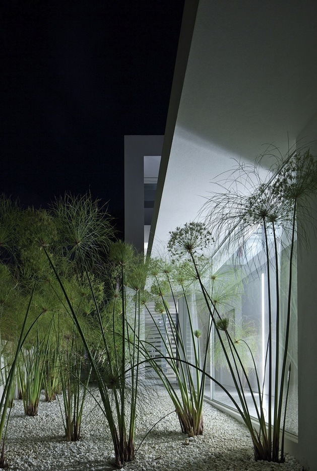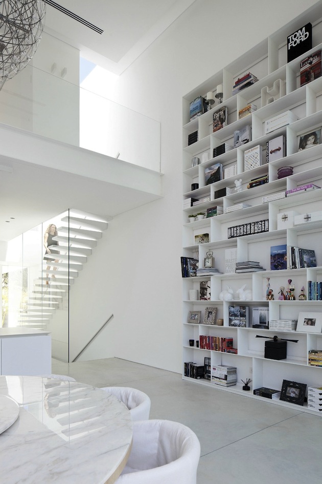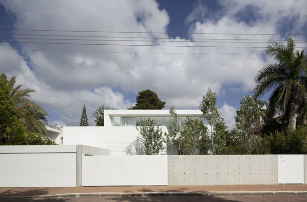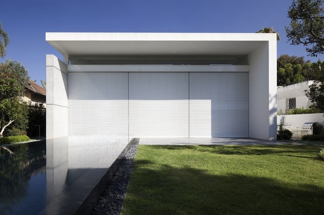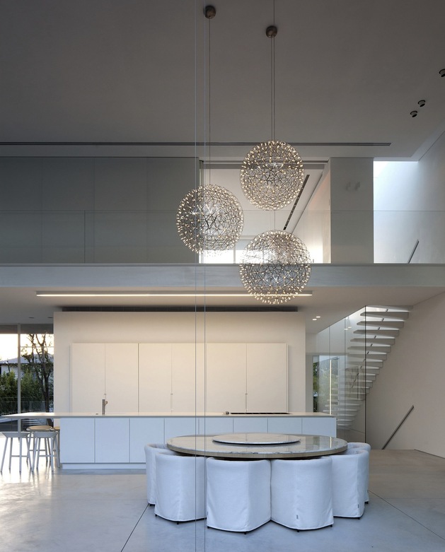 別墅裝修設計白色現代簡約別墅設計以色列建筑師Pitsou Kedem別墅外觀上用橫平豎直的矩形,白色外墻漆,大面積的落地玻璃向院子開放,院子圍墻很好的保護了隱私性,室內分為前后兩部分,在后方,是個開放的公共空間,用以日常活動和社交聚會,在前面,是對著大門入口的臥室,主人套房占據了三樓整層。內部裝飾也是以白色為主調,連地面也是接機白色的淺灰,只用了少許布藝,地毯增色,整個建筑內外都透出一種優雅,高貴的氣質。