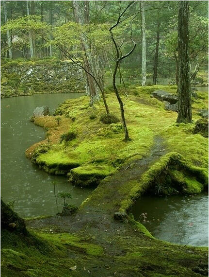 苔蘚在日本庭院藝術(shù)中仍然扮演著很重要的地位,因?yàn)樗徽J(rèn)為是一種和平的植物,給人的感覺是歡迎來到這與世隔絕的地方。