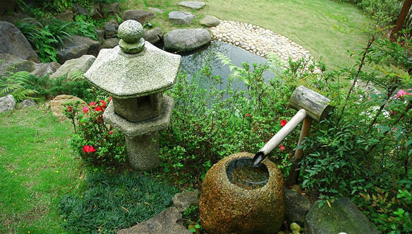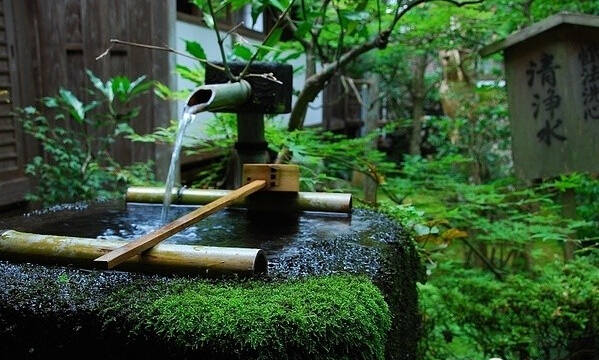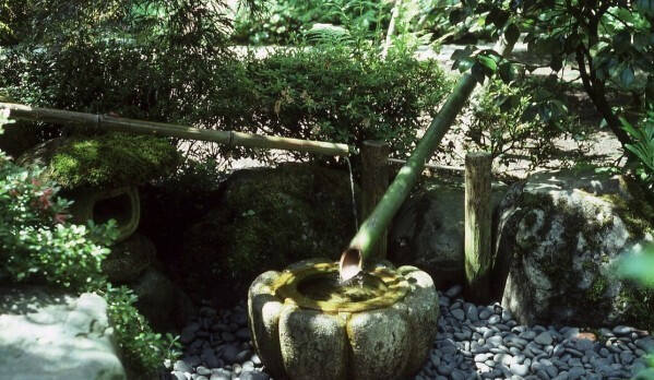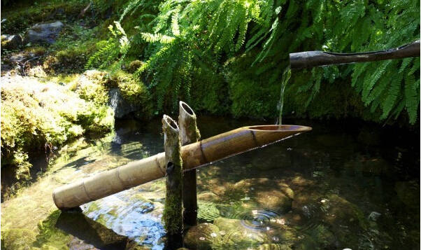 添水,這些獨(dú)特的水景的特性運(yùn)用于庭院之中是為了驅(qū)趕可能會(huì)破壞庭院的鳥群和動(dòng)物,竹筒撞擊在巖石上發(fā)出的聲音就是所謂的恐嚇戰(zhàn)術(shù)。