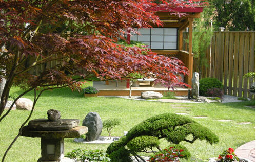 日本庭院樹木的種類,大致可以分為常綠樹和落葉樹兩類,而兩者的合理布局對(duì)庭院構(gòu)景有著重要的意義。