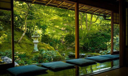 枯山水是源于日本本土的縮微式庭院景觀,多見于小巧、靜謐、深邃的禪宗寺院。