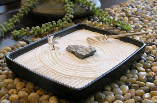 不妨觀察觀察沙子的形式,感受一下它是如何創(chuàng)造河流蜿蜒的錯(cuò)覺。如果你需要規(guī)模再小一點(diǎn)的,你可以在網(wǎng)上購(gòu)買這種微型的巖石園。