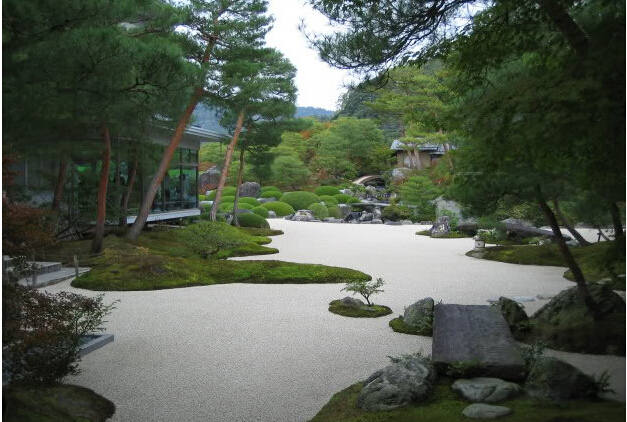 禪宗庭院內(nèi),樹木、巖石、天空、土地等常常是寥寥數(shù)筆即蘊(yùn)涵著極深寓意,在修行者眼里它們就是海洋、山脈、島嶼、瀑布,一沙一世界,這樣的庭院無異于一種精神庭院。