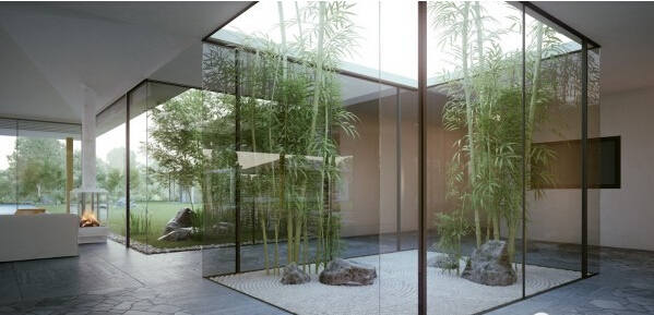 別墅裝修設(shè)計(jì)中庭院有著獨(dú)特的自然景觀,較為單純、凝煉,細(xì)節(jié)上的處理是其最精彩的地方,它結(jié)合水、石、沙、植物等簡(jiǎn)單的自然元素,創(chuàng)建一個(gè)靜謐的禪宗庭院。