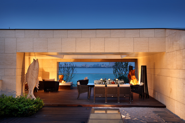 在項目整體規(guī)劃中,中央景觀帶引入蘇式街巷和小廣場格局,形成自由收放的公共休閑活動空間,主要建筑傍依兩側(cè),或直接臨湖,或臨寬闊河道,在景觀方面基本達到戶戶臨水的生態(tài)居住格局。為達到對資源的充分利用,建筑高度從東往西逐漸抬高,以滿足每棟別墅對湖景的觀賞需要。在社區(qū)南端臨湖5000m2景觀綠地內(nèi),將配置蘇州首家小型直升飛機停機坪及私家游艇碼頭,為整個社區(qū)的定位提升,創(chuàng)造高附加值。就單棟建筑而言,規(guī)劃中強調(diào)戶戶具有超闊私家院落、私家泳池、私家親水駁岸,實現(xiàn)最大化的居住舒適性,強調(diào)私密性和私屬領(lǐng)地價值。